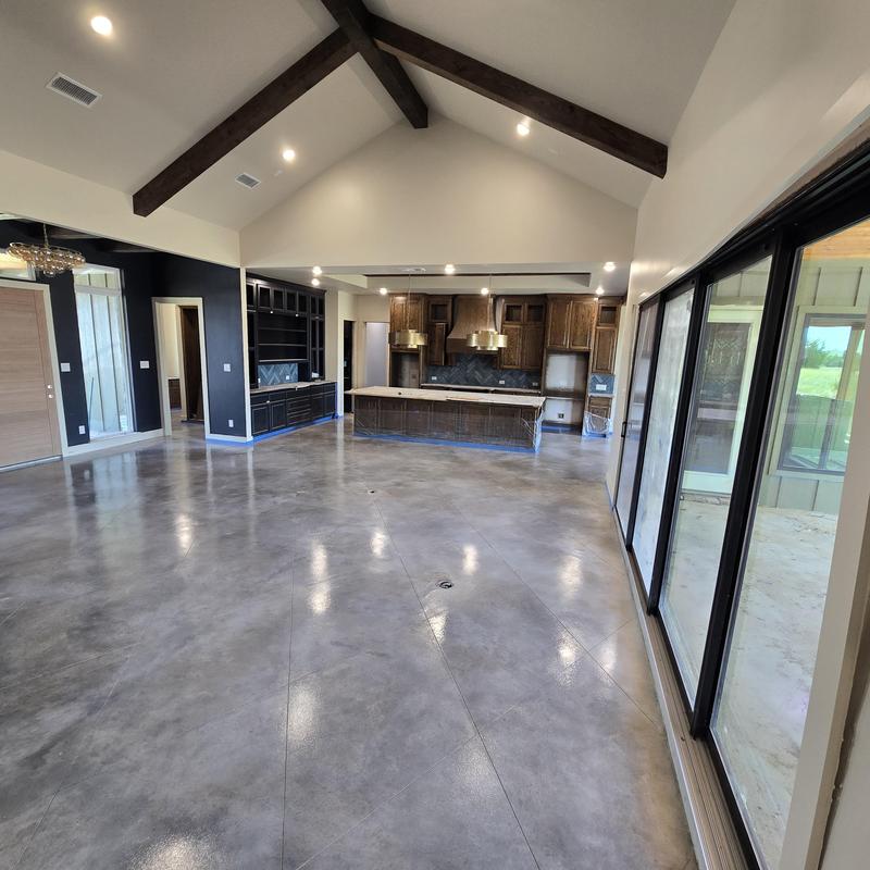 Contractors completed whole-house concrete staining and sealing for custom builders in Prosper, Texas. The project included a urethane top coat to protect the surface and create a consistent finish throughout the home.
