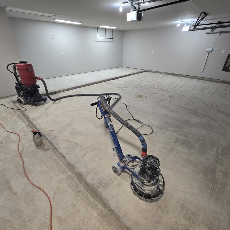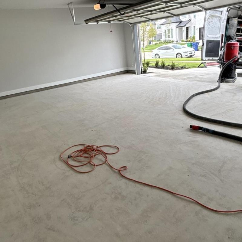 A contractor applied a snowfall blend over gray epoxy and added a poly topcoat with anti-skid protection to a floor in Celina, Texas. This process improves floor durability and traction, providing a clean and functional surface suitable for residential or commercial use.