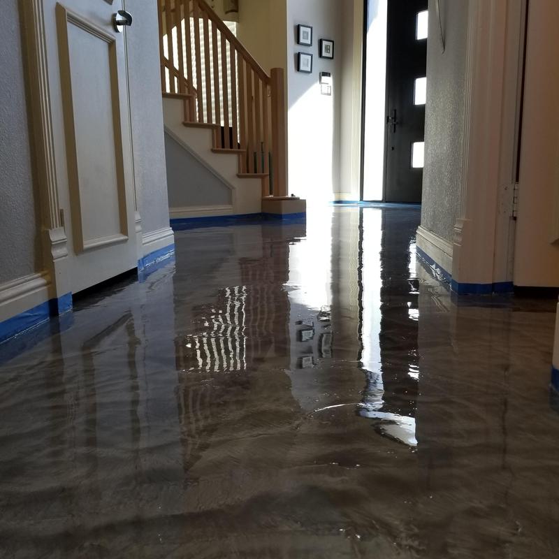 Epoxy Floored applied a gray industrial epoxy coating throughout a residential interior in Plano, Texas. The project included a durable polyurethane top coat for added protection and finish. This full house installation provides a uniform, easy-to-clean surface suitable for high-traffic areas.