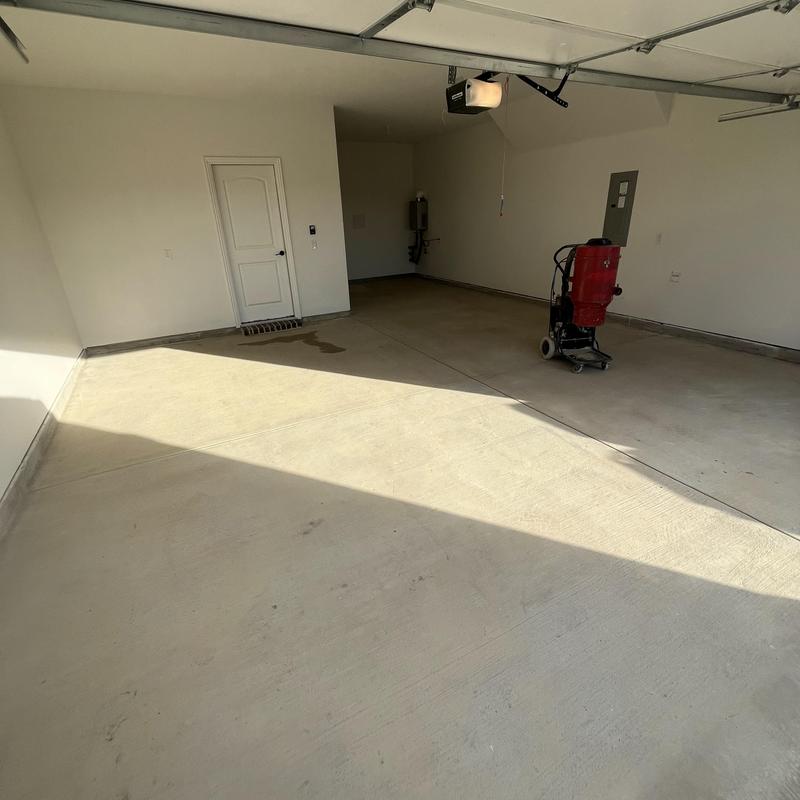 Epoxy Floored installed a Nightfall blend epoxy coating with a policepartic top coat in a three-car garage for a new home in Aubrey, Texas. The installation was completed before move-in to provide a finished, sealed surface.