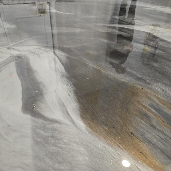 Epoxy Floored completed a commercial epoxy flooring project in Carrollton, Texas. The floor used a leather brown metallic illusion coating with a matte finish. This installation provides a durable surface suitable for high-traffic business environments.