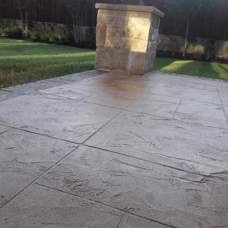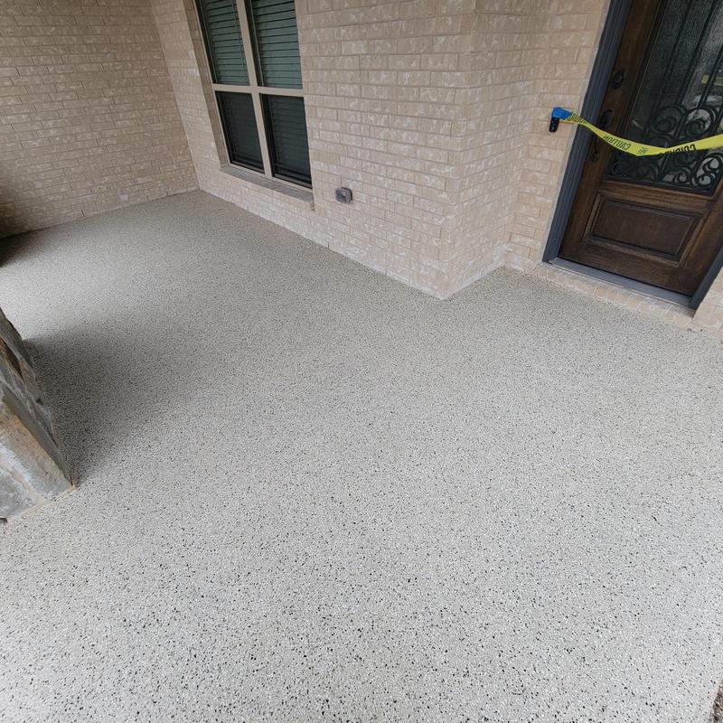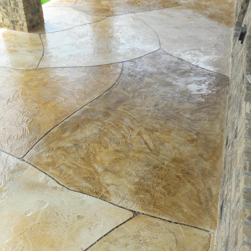 A contractor in Allen, Texas applied a flagstone pattern with an acrylic seal and anti-skid finish. This service improved surface grip while maintaining the natural look of flagstone, offering safer walkways or patios.